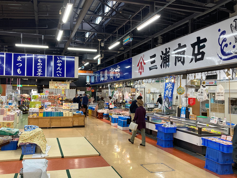 魚菜市場にはウニ、ホヤ、アワビ、カキ、ワカメ、サケ、サンマ、イカ、カニ等、一年中獲れたての海の幸がいっぱい。三陸ならではの海産物はお土産にも大好評。 また市場には地元の農家の方たちの直売所もあり、自慢の農産物や山菜、きのこ等にぎやかに並びます。新鮮で安いだけでなく、買物をしながら笑顔と活気と人情にふれあることもこの市場の魅力です。